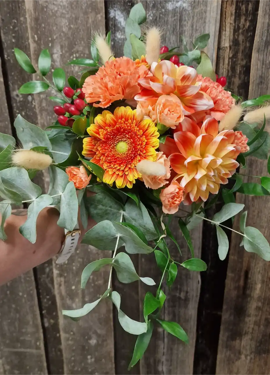 4. Huolehdimme lopusta – sidomme kukat valmiiksi juhlapäivääsi varten ja toimitamme ne tarvittaessa juhlapaikalle Kuhmon alueella.